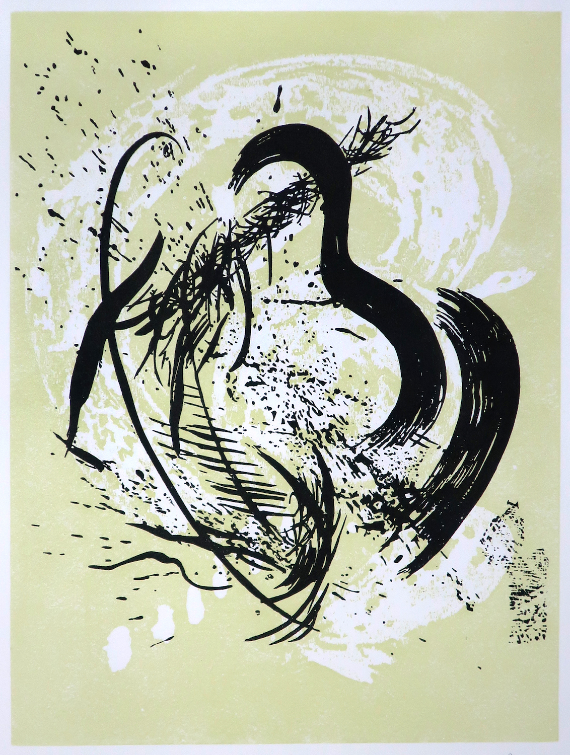 Susann Hoch: Gesten des Windes III, Linolschnitt u. Linolätzung, 2024